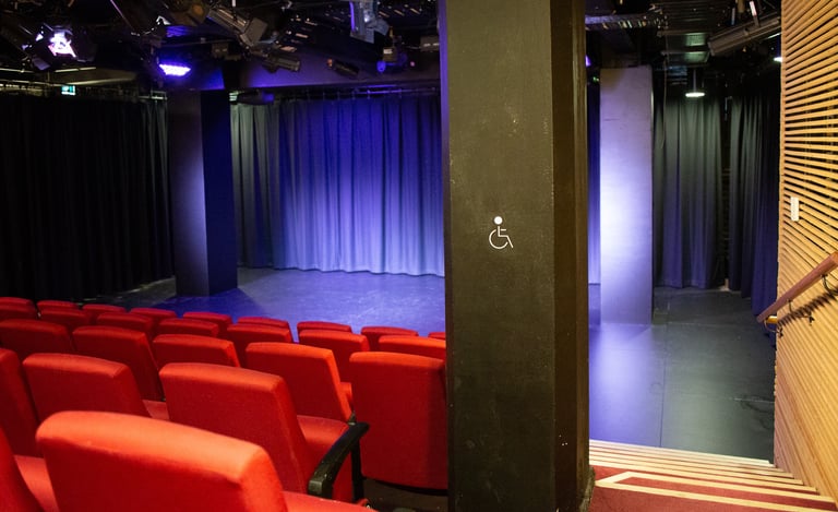 The Theatre and Function Rooms are located on the basement level of Lopdell House. The venue features two adjoining function areas with a kitchenette and bar, plus an 83 seat auditorium, toilets, two changing rooms and a green room.